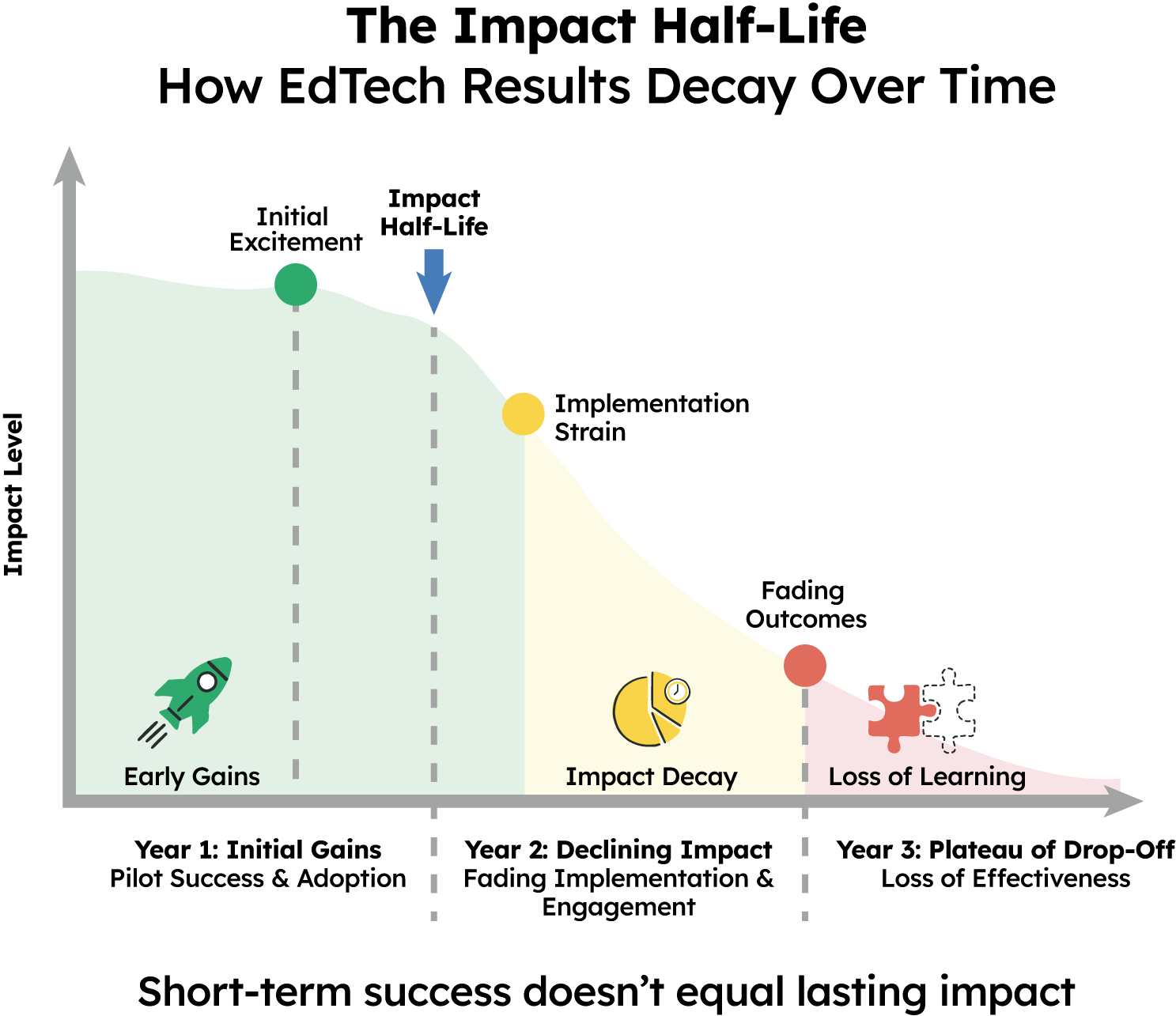 In science, a half-life measures how long something remains effective before it diminishes. Impact in education behaves the same way.